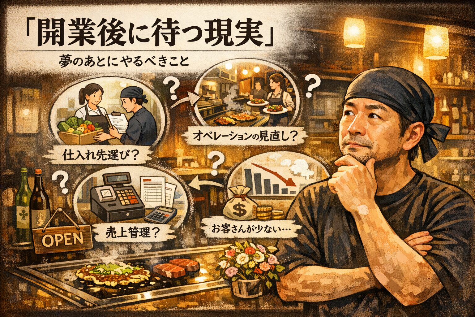 「お店を開くのが夢だった」という気持ちは、開業した瞬間に「で、明日から何をすればいい?」という現実に変わります。